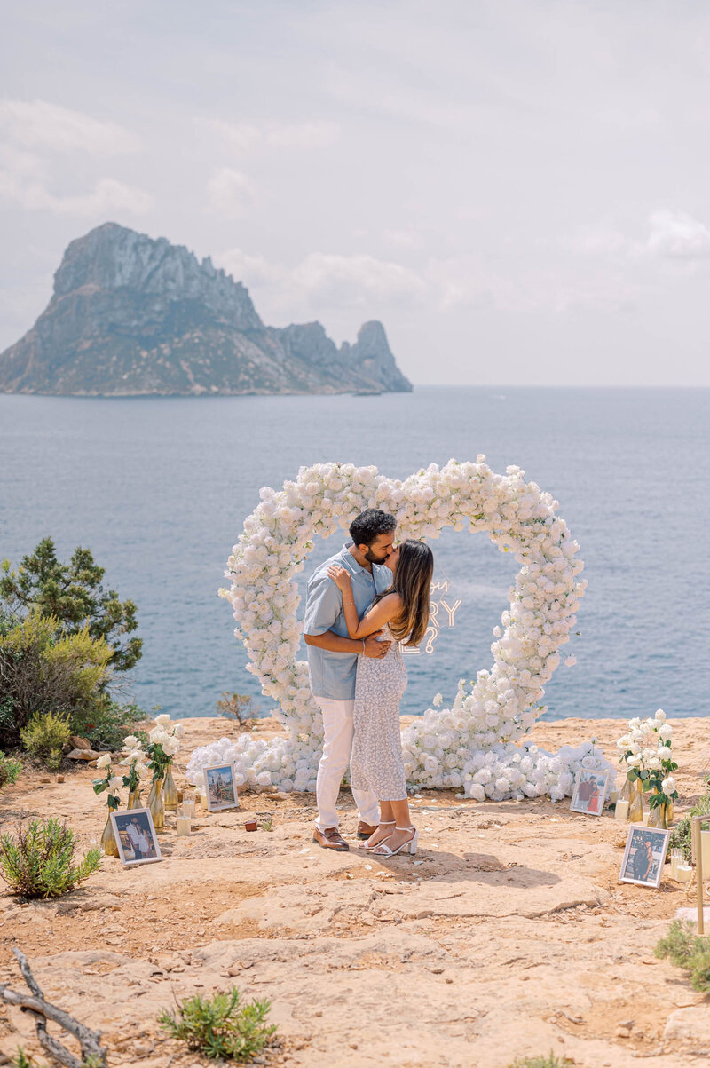Our proposal planning and photography services in Ibiza are tailored to meet your unique vision with several exclusive collections. We provide assistance with selecting the perfect location in Ibiza and pairing it with a professional photographer. For a more luxurious experience, our premium collection includes proposal planning, unique location with champagne and a romantic dinner, to celebrate your unforgettable moment.
